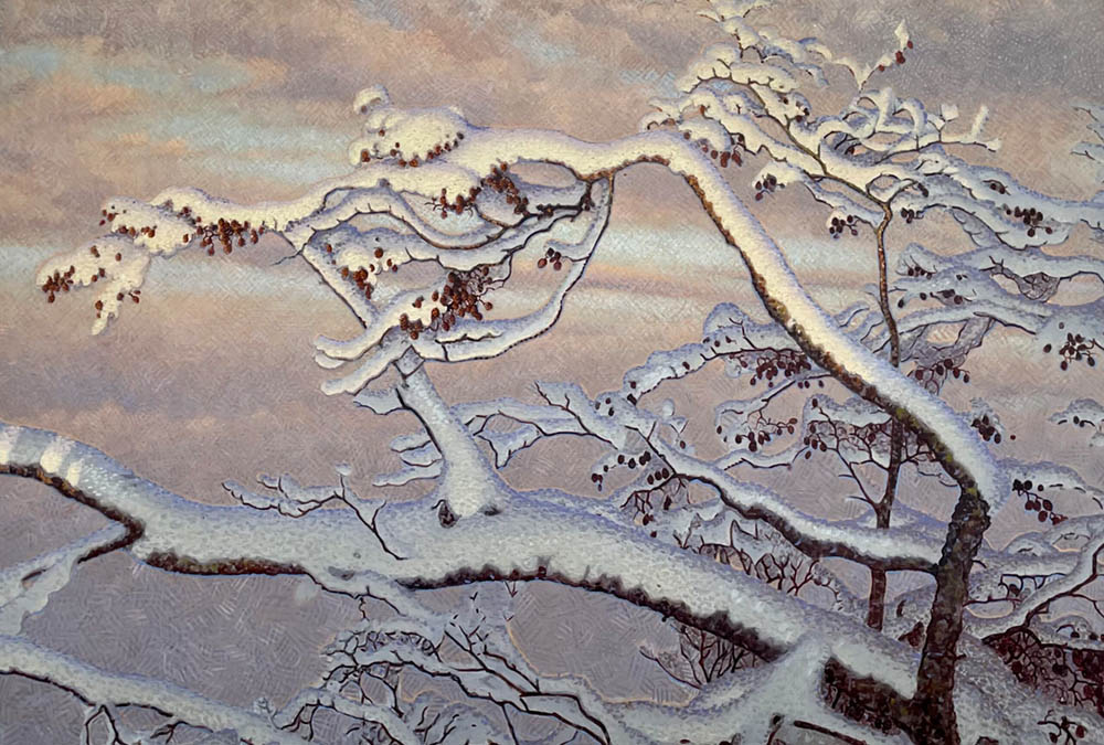 I Gustaf Fjæstads bildvärld återkommer han ständigt till vatten i sina motiv. Det kan ta sig formen som is, snö eller ett flöde rinnande från Racken nedför Viksälven. Vattnet är återkommande i teosofin som en symbol för livsanden vars kraft tros finnas i varje beståndsdel av såväl natur som människa och ta sig ständigt nya former genom reinkarnation. Gustaf Fjæstad formulerade aldrig själv den sortens resonemang i samband med sitt konstnärskap men var väl bekant med dessa. I många av hans vintermålningar ses spår av människan men figuren finns sällan kvar i bilden. Hen tycks ha försvunnit in i landskapet och blivit en del av någonting större.